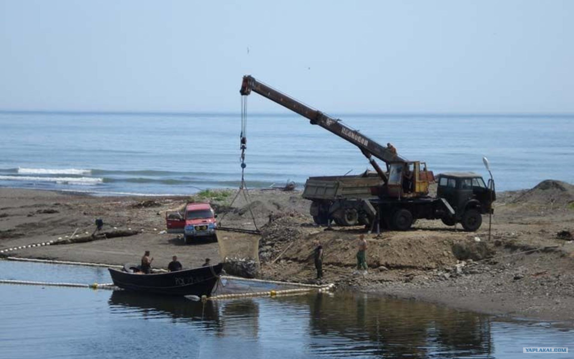 ....прям в устье перекрывают реку наглухо и похуй ..вся рыба идущая с моря на нерест уходит на нерест не в реку, а в бортовые камазы стоящие на берегу, в самосвалы! lol.gif