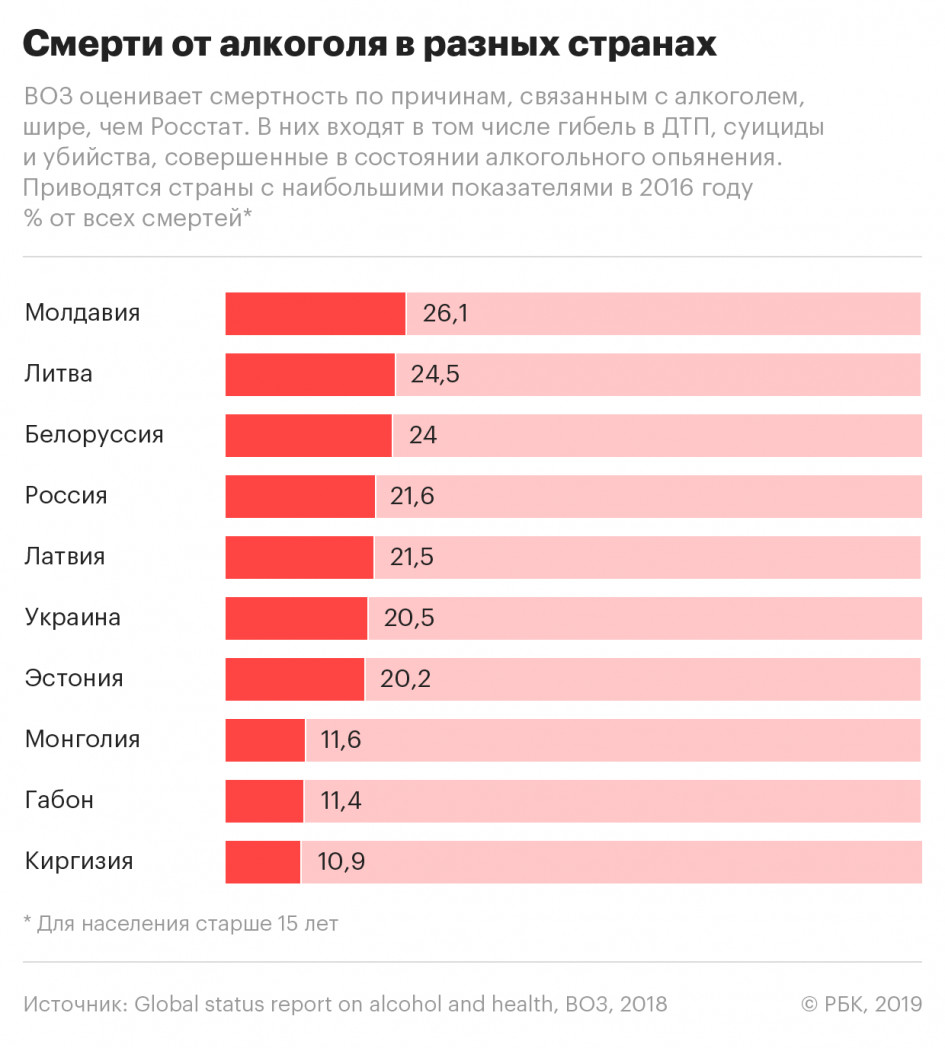 Статистика смертности от алкоголя в мире свидетельствует, что РФ вышла на печальное первое место,обогнав другие страны