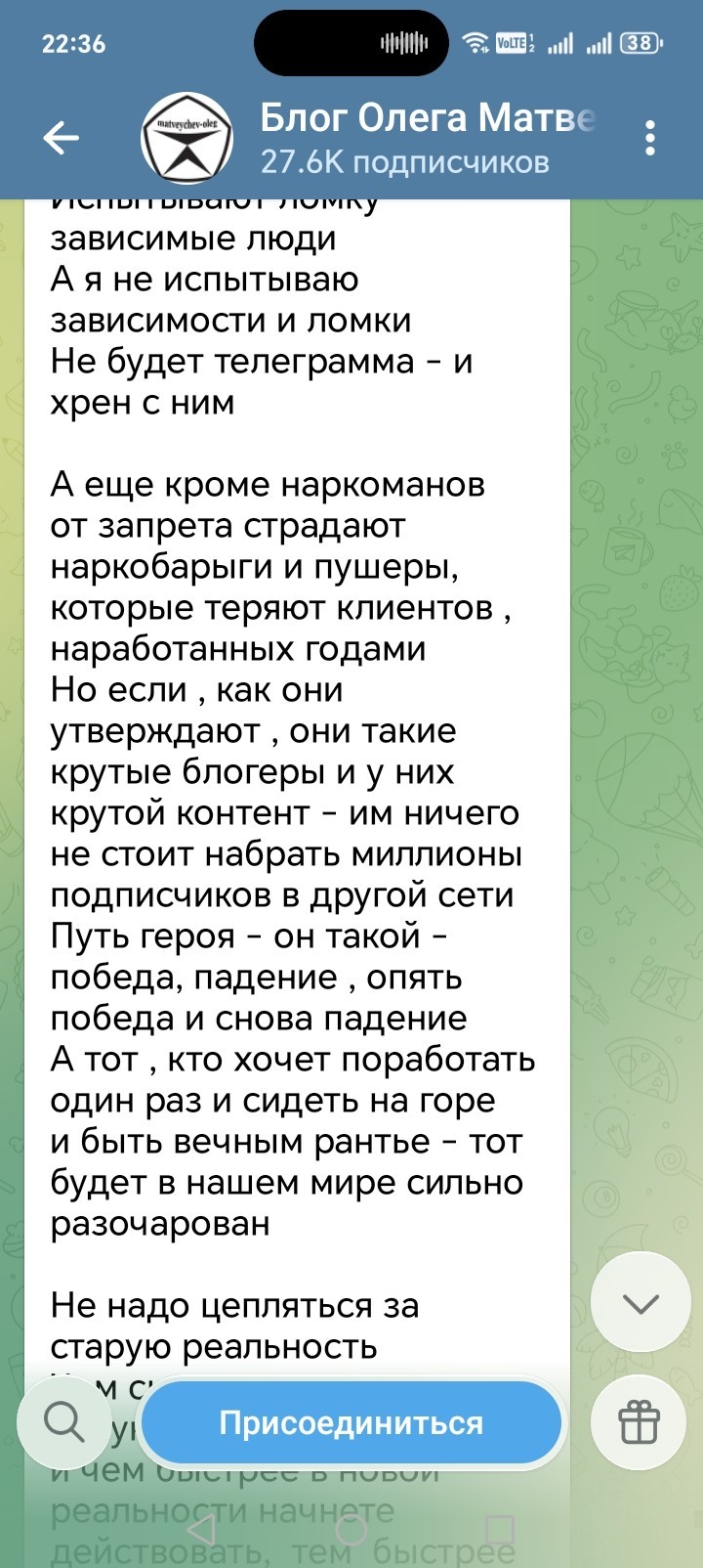 Да он сам педо-наркоман, только за сегодня 8 сообщений в телеге.