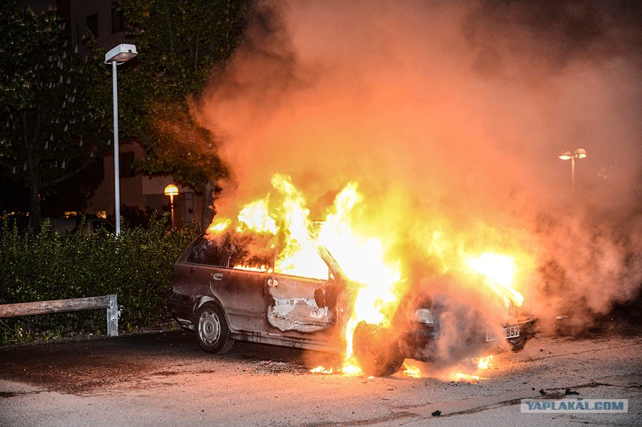 Погромы в Швеции, мигранты жгут машины в Стокгольме