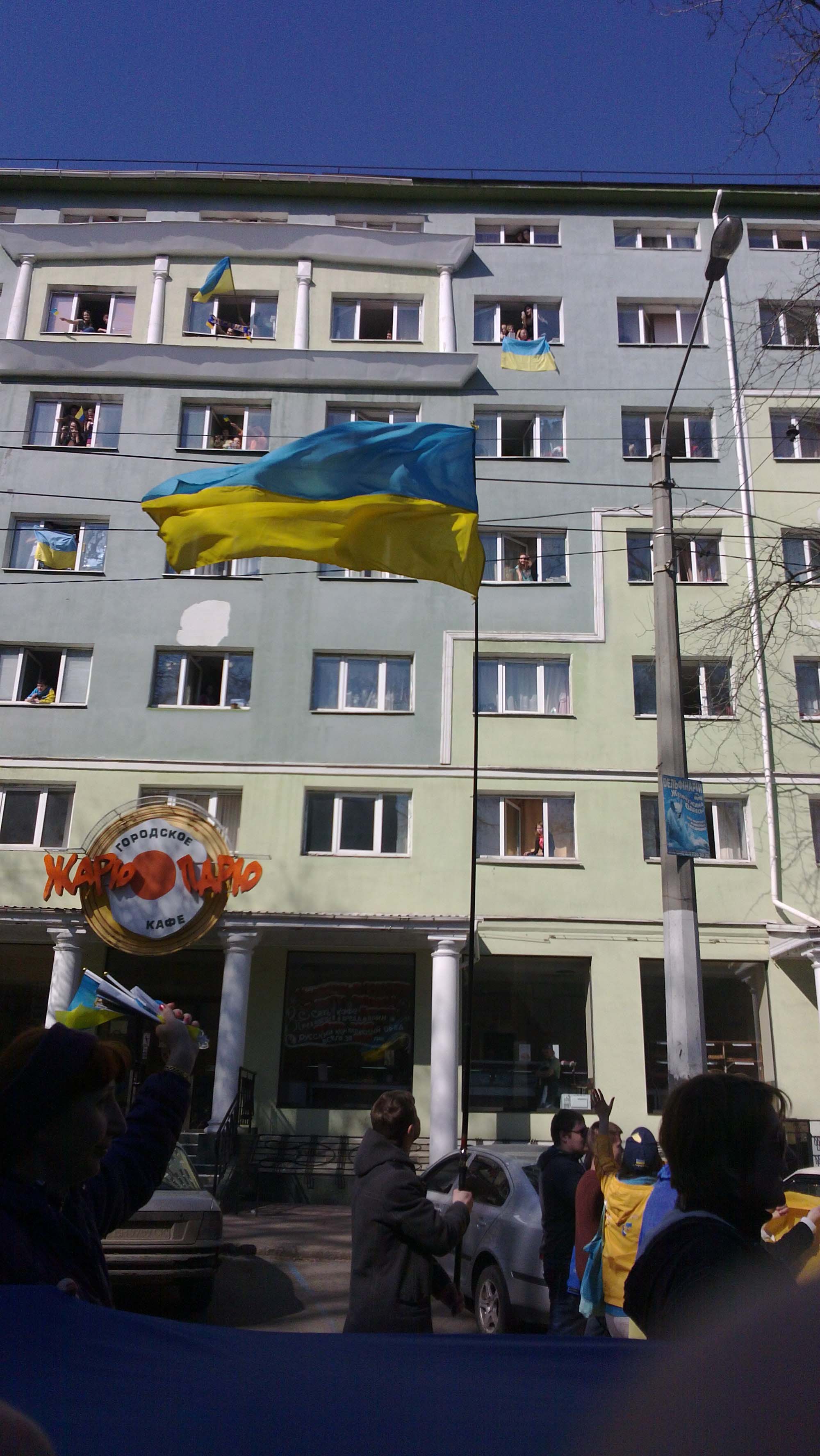 Кста только что мио окон прошла толпа человек 400 с лозунгами за единую  Ураину, они сейчас возле стадиона Металлист кто рядом живет можете их слышать.