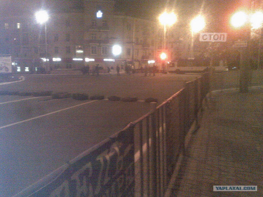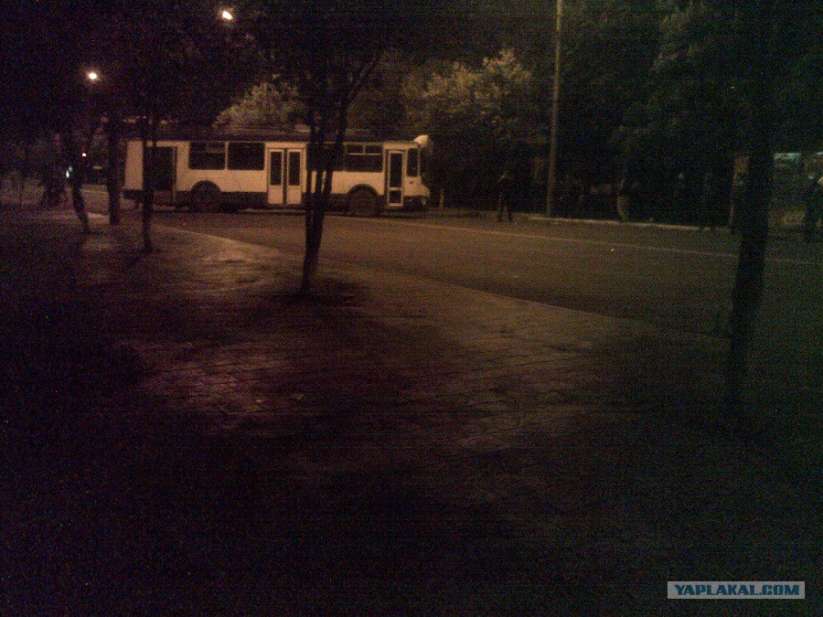 минут 10 назад кинули пару бутылок с бензином в окно прокуратуры на 2 этаже .уже потушили.милиция вышла и траву затоптала под окнами, тоже горела.