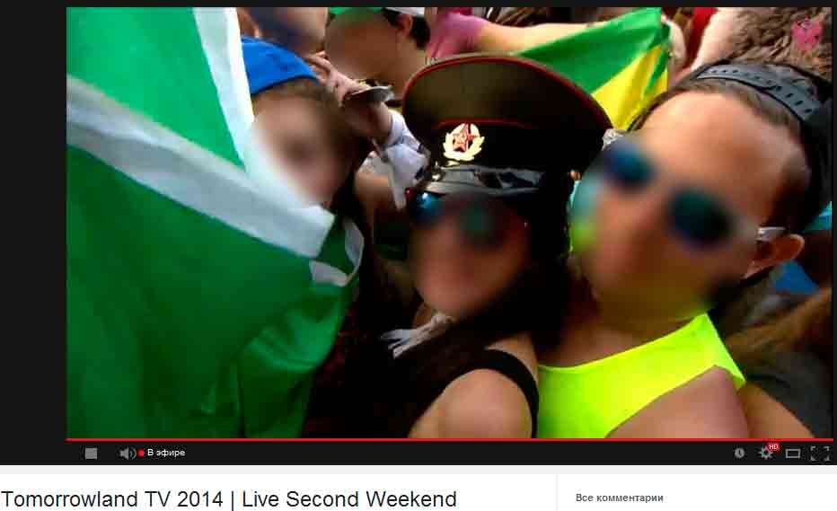 Публика на фестивале Tomorrowland в Бельгии тоже патриотична. (Возможно русские, но не уверен)