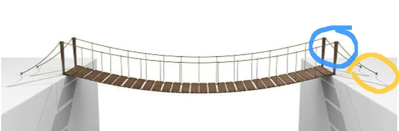 А разве троссы на которых держится мост не за землю крепятся в бетонном анкере с солидным фундаментом и перекидываются через опоры!?!