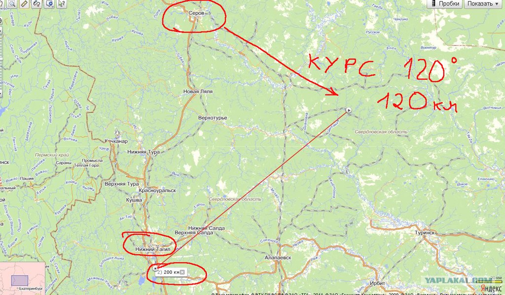 Отметил 120 км от Серова курсом 120%. До Нижнего Тагила - 200 км. Услышать сигнал - нереально. А если севернее Серова - тем более. Только у меня вопрос. Куда ведут все эти железные дороги, которые обрываются?