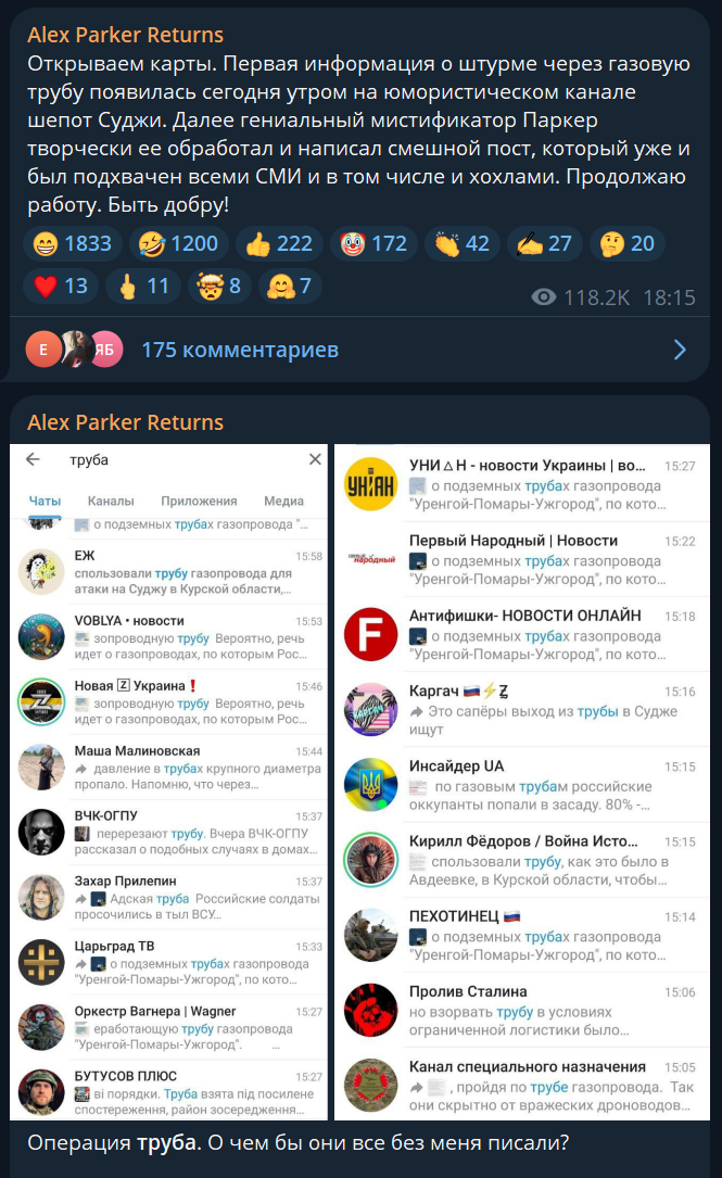 Согласно сообщению СБУ, спецслужбы России якобы привлекли украинских граждан к созданию и администрированию ряда политических всеукраинских и региональных Telegram-каналов. Речь о каналах «Легитимный», «Резидент», «Картель», «Сплетница», «Черный квартал», «Политический расклад», «Нетипичное Запорожье», «Тремпель Харьков», «Одесский фраер», «Днепр live», «Николаев live», «Херсон live».