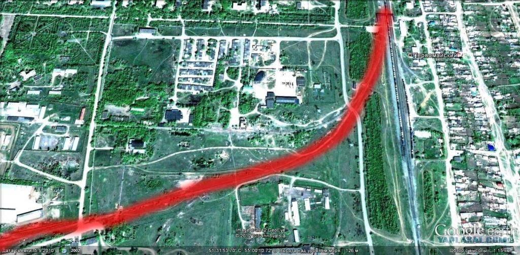 Здесь есть ответвление от основной ветки железной дороги, проследуем по нему