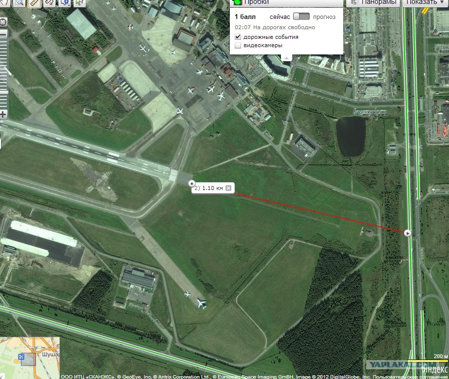Какой то аэропорт не правильный , у нас В СПБ от ВВП до дороги 1.1 км