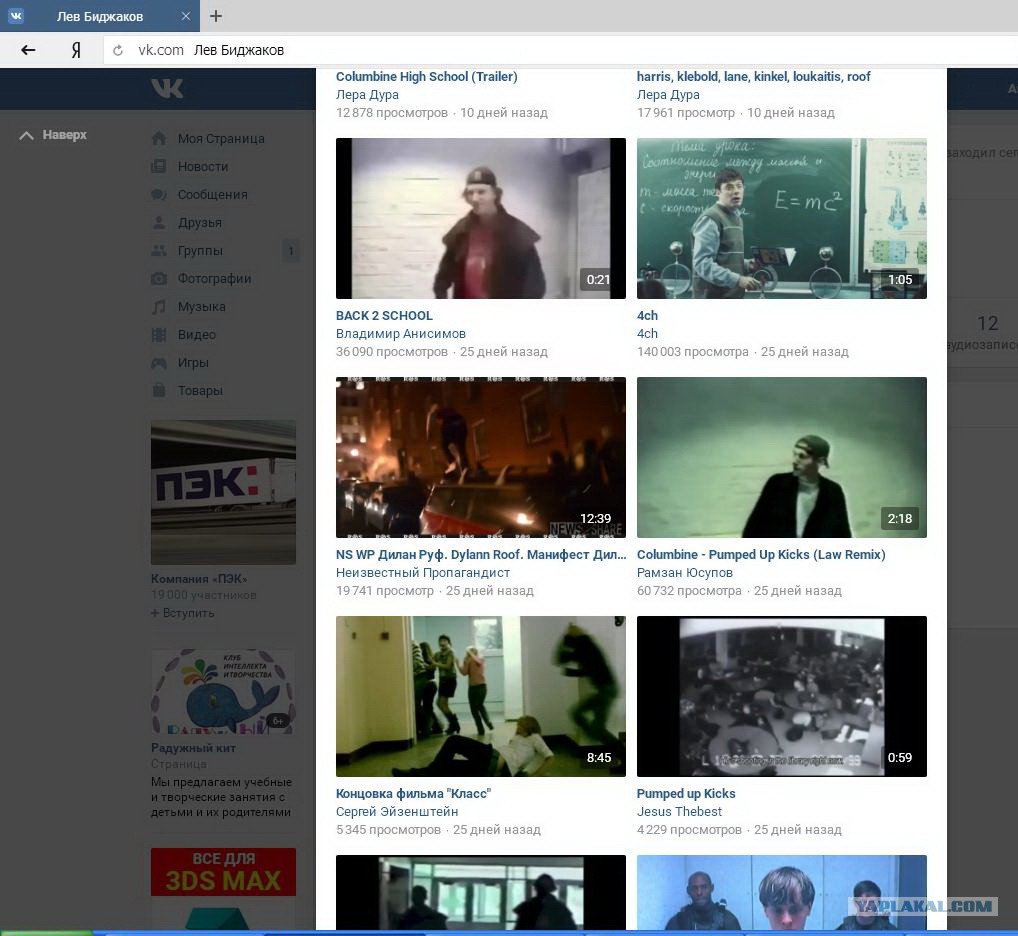 Кстати о нем упоминалось в запрещенной сейчас литературе. Хотя не думаю, что они (два урода с ножами) это читали у них были другие картинки. У одного 18 роликов на странице в ВК и там только три темы расстрел в США 1999 году, фильм класс и еще какой то урод из США с убийствами на почве расизма. В одном отрывке показана сцена расправы над школниками и самоубийство убийц.
