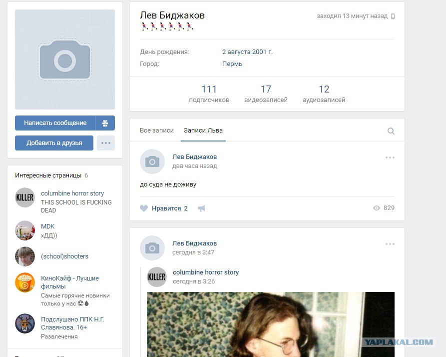 Всплывают все новые детали из биографий 16-летних подростков, 15 января устроивших резню в пермской школе. Как утверждают знакомые одного из нападавших, изначально парень хотел устроить бойню в колледже, где обучался профессии сварщика. В учебное заведение он намеревался прийти с огнестрельным оружием. Правда, приобрести ствол оказалось не так просто, поэтому нападение Л. решил перенести в бывшую школу. И использовать нож.