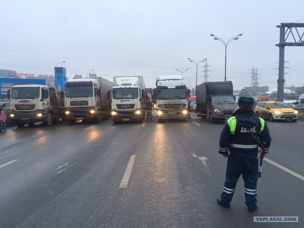 Дальнобойщики начали перекрывать МКАД 04.12.15
