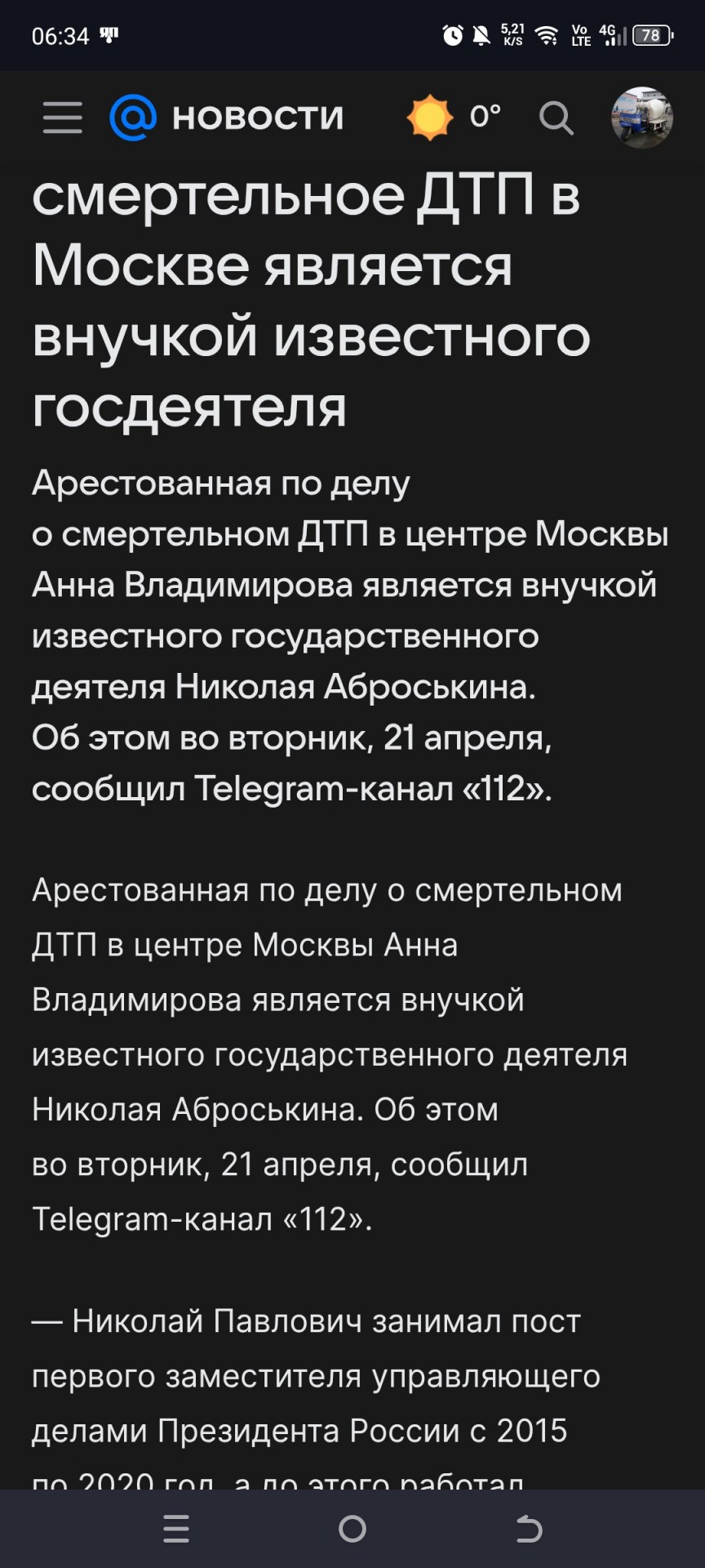 Виновника ДПТ оказалась из "золотой молодёжи", прямой потомок семьи, которая многие годы жила в кругу государственной элиты. Сама девушка тоже успела поработать в государственной структуре — в Россотрудничестве, которое занимается международными связями с бывшими республиками СССР.