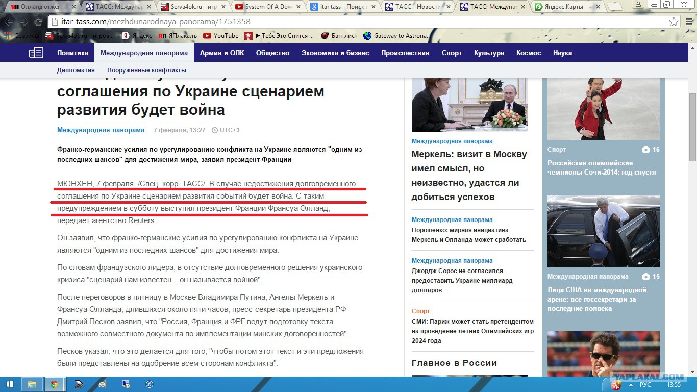 В случае недостижения долговременного соглашения по Украине сценарием развития событий будет война. С таким предупреждением в субботу выступил президент Франции Франсуа Олланд, передает агентство Reuters.