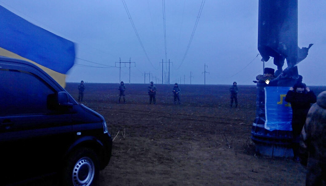 "Нацгвардия и батальон Херсон (около 100 вооруженных бойцов) во главе с Ильей Кивой окружили участников блокады Крыма, которые охраняют поврежденные электроопоры на Чаплынке. Силовики хотят оттеснить участников блокады от линий электропередач. По словам очевидцев, уже несколько крымских татар пострадали. Силовики не стреляют, но бьют прикладами автомата, в том числе и женщин. Противостояние продолжается, на место столкновения продолжают прибывать крымские татары живущие в Херсонской области", - написал он.