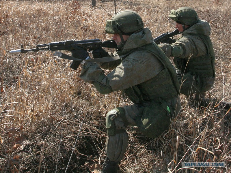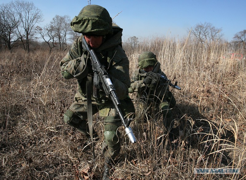 Морские пехотинцы в комплектах "Ратник" продвигаются вперед...