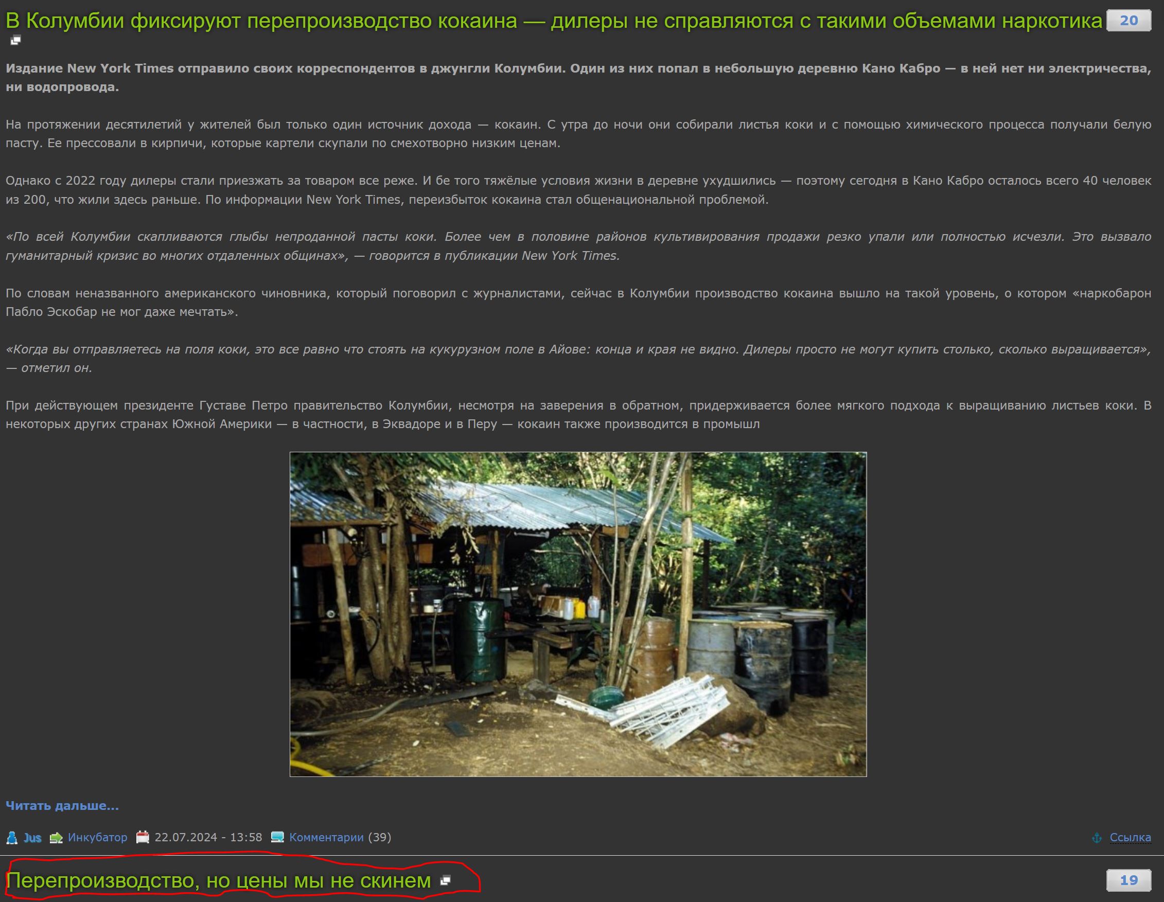 В Колумбии фиксируют перепроизводство кокаина — дилеры не справляются с такими объемами наркотика