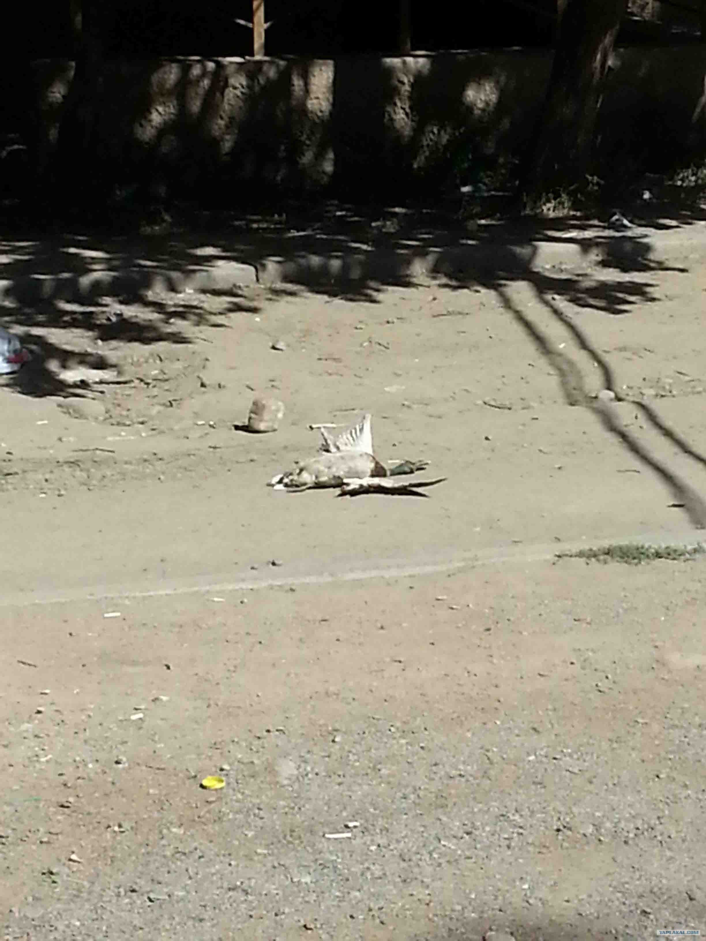 27. Не угадали. Это ДОХЛАЯ УТКА. незнаю ка она оказалась там. Видимо летела мимо и упала в обморок от вида на двор. Запах стоял жуткий. Жара плюс 28