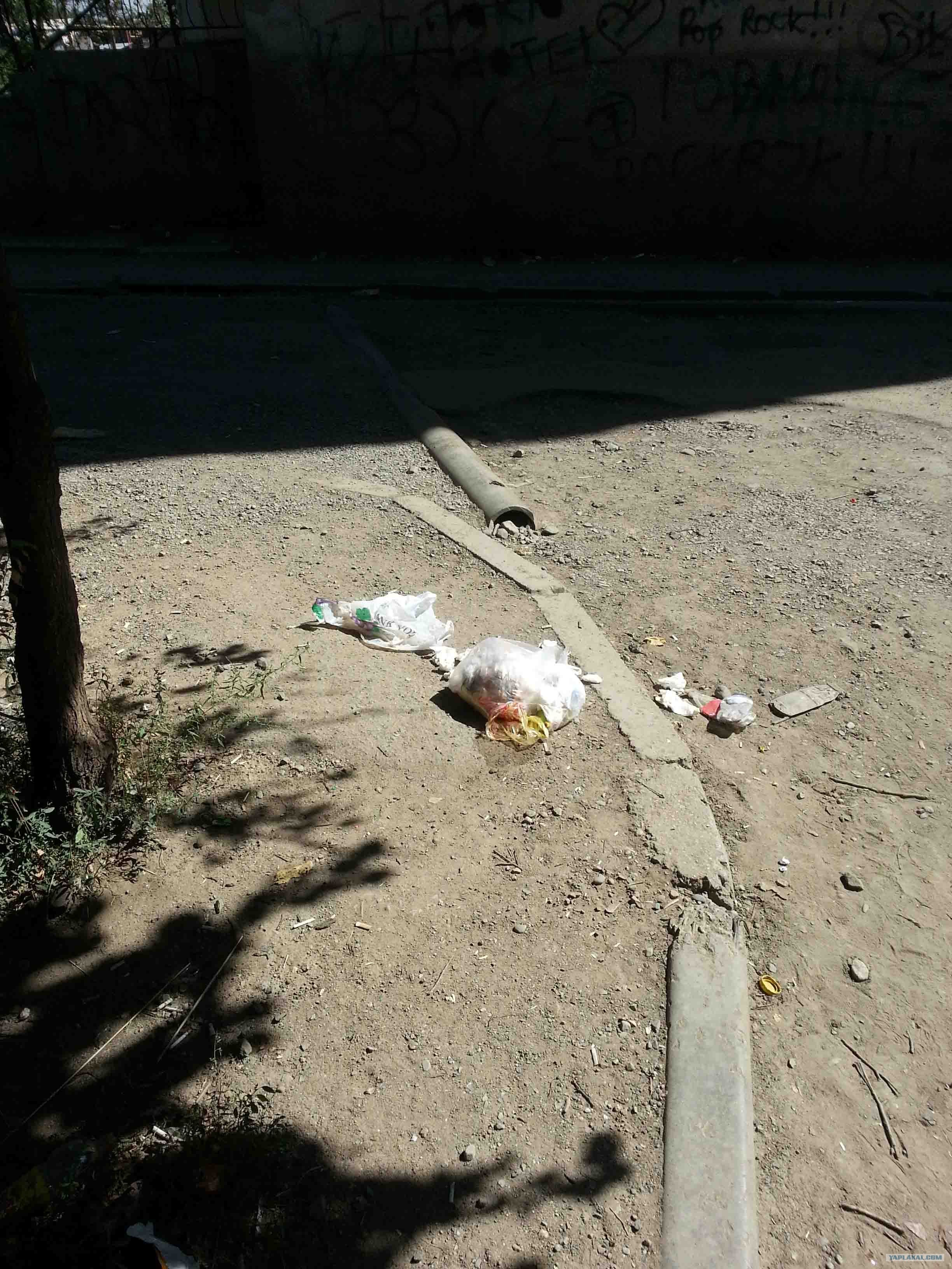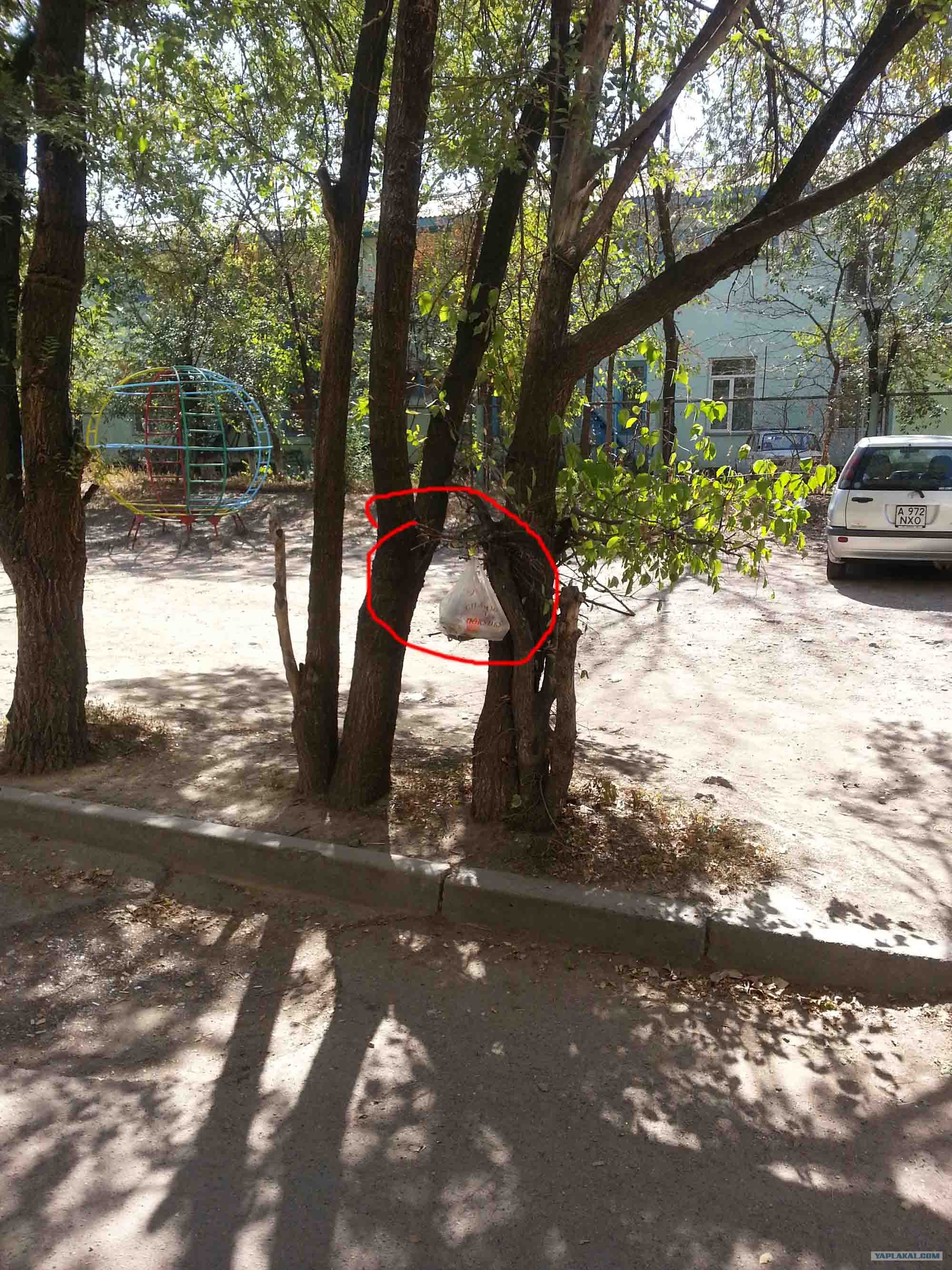 48. Мешочек мусора. Кто то снова недонес. Ну спасибо что хотя бы на дерево..а то собак то много