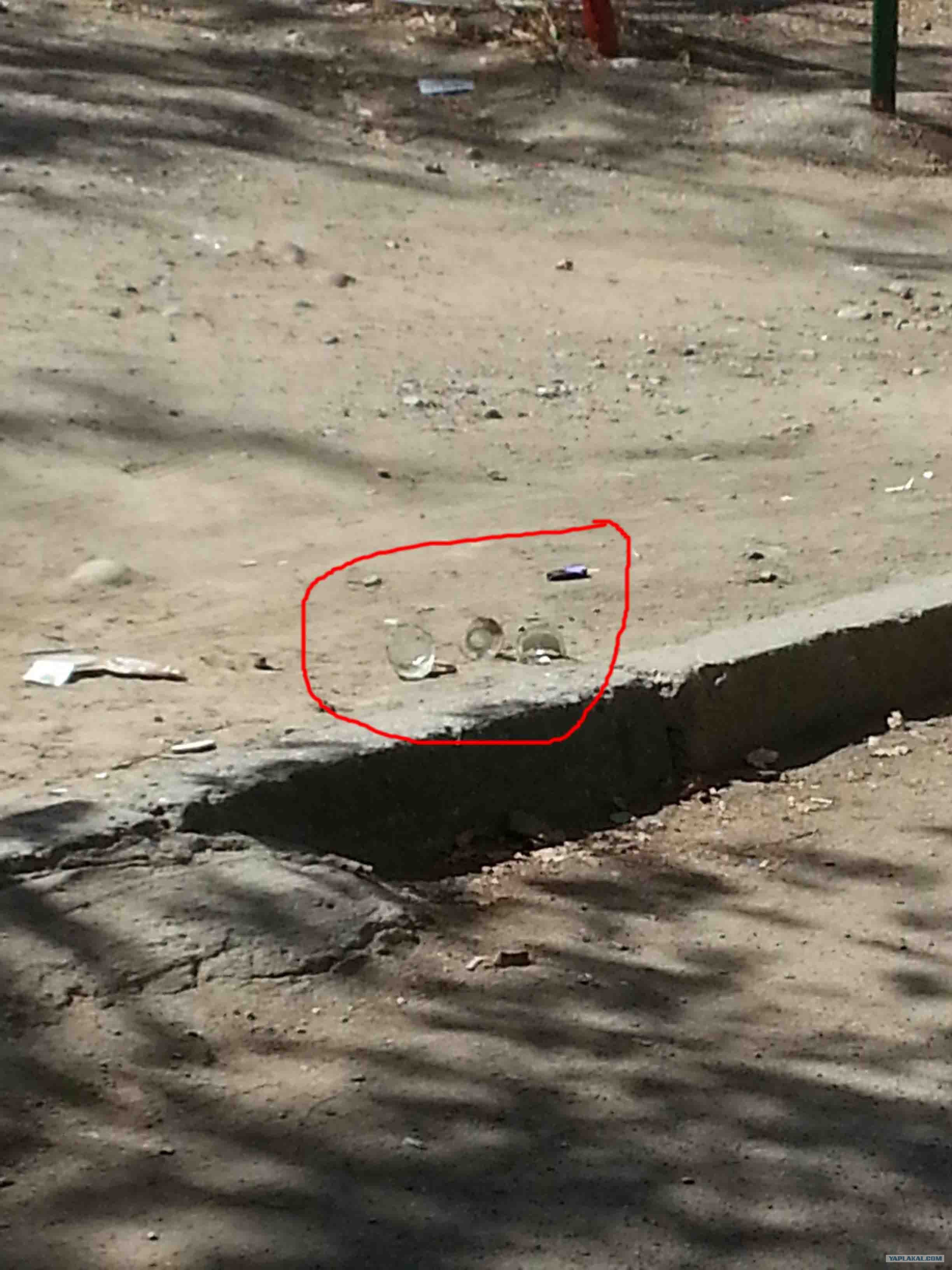 47.БЬитая бутылка. кто то ее кинул на тереторию детского сада.