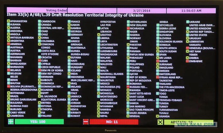 Там видите крестик стоит возле казахстана а крестик означает abstain-воздержался а должны были голосовать NO-против отморозился казахстан...