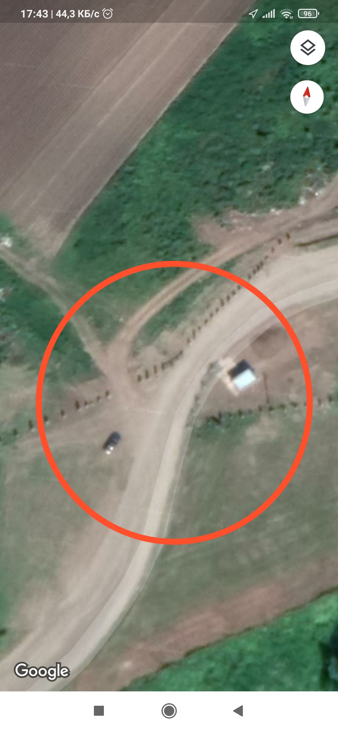 А вот - место и дорога к посёлку. Все объезды - грунтовки по полям.