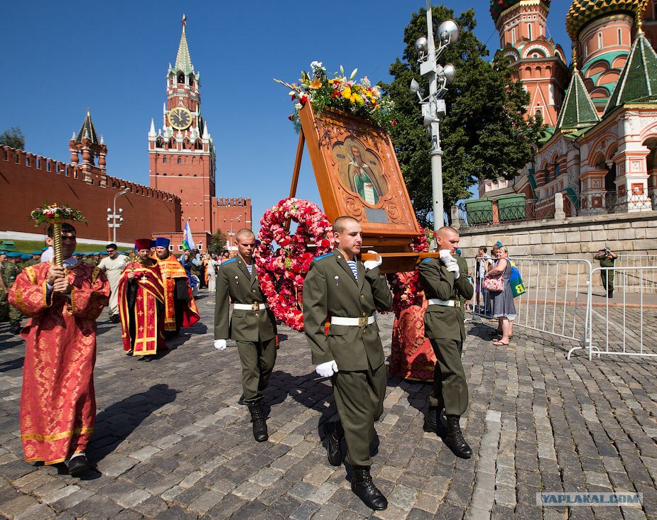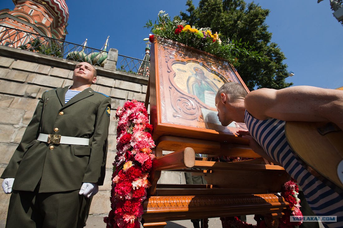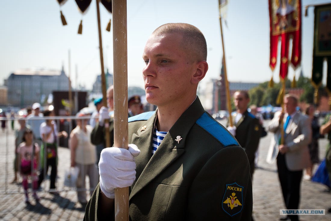 Праздник ВДВ на Красной площади и Васильевском спуске — это военный парад, крестный ход с иконой Ильи Пророка, концерт с непременным Газмановым и песней про офицеров, ветераны ВДВ, фотографирующиеся с курсантами, и очередь за гречневой кашей с тушенкой из полевой кухни.