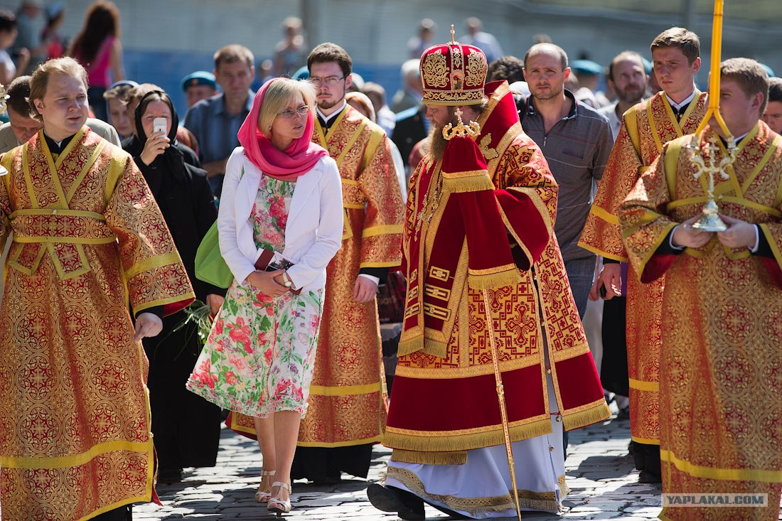 Рядом с очередью за кашей — другая очередь: приложиться к иконе Святого Ильи Пророка.