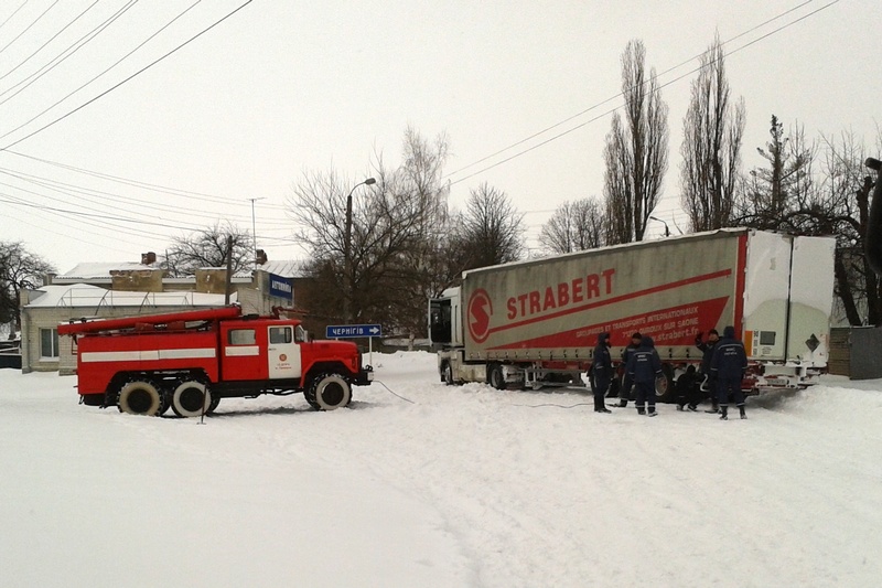 По поводу МЧС - не знаю что там у вас расформировали, но вот картинка снята буквально несколько часов назад. МЧС вытягивает фуру. Может это только у нас в селе такое, а у вас в городе все по-другому.