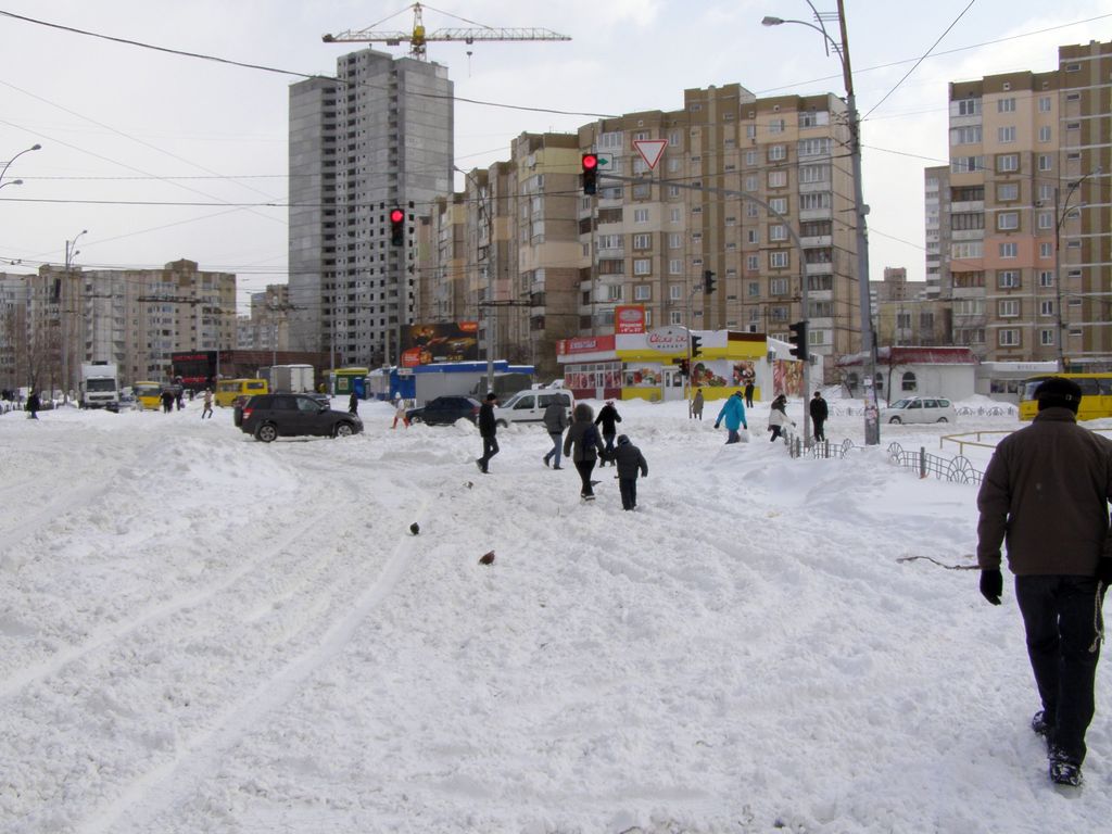 Сегодня ехала на работу, это капец. Транспорт не ходит, по дорогам, по колено в сугробах лазят люди, их объезжают одиночные машины. Расчищенных мест очень мало, несколько машин занесено так, что невозможно понять что это машина а не куча снега. Сугробы есть по метру с лишним) Я такого в Киеве, в конце марта не припомню. Работает только метро. Но народа довольно таки много, на удивление. Сняла пару роликов, показать знакомым. Не выложу, так как улетаю в процессе съемки в сугроб и матерюсь))) Идти тяжело - под снегом нога попадает на выступы - и ты падаешь - тропки очень узкие, есть места где идешь просто "по следам" тех кто прошел тут раньше. Метет сильно. Очень холодно - ветер с колючими снежинками, метет прямо в лицо, долго на улице лучше не находиться, я теплых варежках пальцы чуть не отморозила. Переходы завалены снегом, люди там как крабы поднимаются. Да и от карабканья по сугробам существенно устаешь. Но усердно лазят, прям толпа народа)) Хотя много магазинчиков и ларьков закрыто, а на открытом базаре энергичные бабки сметают снег с товара, хотя 70% тоже закрыто. И это в 6 часов вечера) Я шла и думала - интересно, наверное в Америке это было бы "о май гад, о май гад, апокалипсис!". А у нас я в 8 утра видела бабку старенькую, с палкой, что бодро шуровала в магазин. Кстати! В магазинах нет хлеба почти - все раскуплено. Видать не могут подвезти. И толпа народа - скупаются как на "конец света", хех) Очереди как под Новый Год в супермаркете.