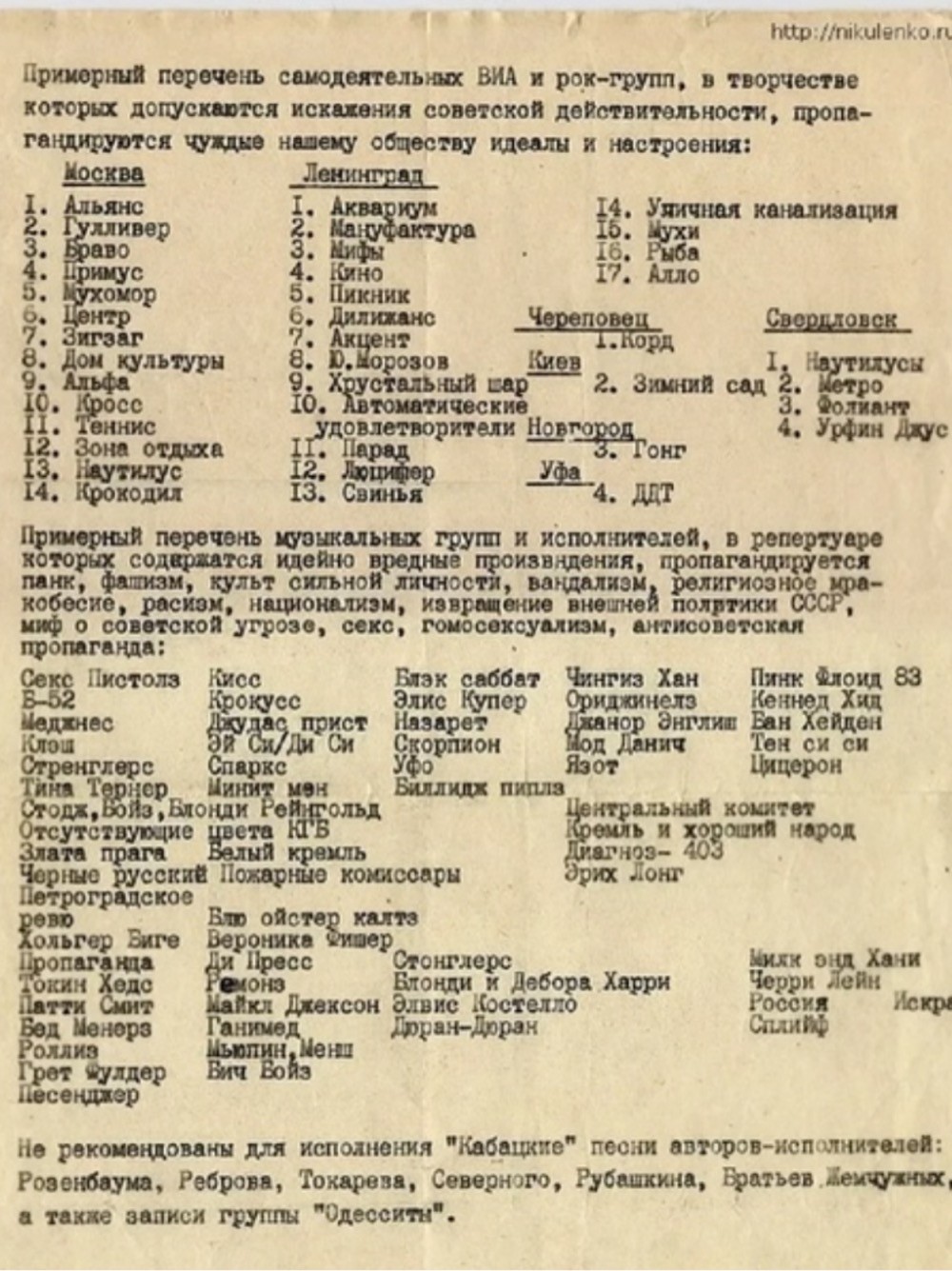 Форменный дебил, музыка не может быть пропагандой в большинстве своем, это как запретить картины Леонардо да Винчи потому что они пропагандируют современную позицию Италии по антироссийским санкциям. И да, запретный плод обычно сладок. Так не далеко до формирования субкультур по типу стиляг с поклонением западным ценностям, а ведь появилось она как раз как бунт против запретов. Короче тут на целый пост тема а по сути надо свою качественную делать. И кстати она есть, вот только этих исполнителей почему то мы не видно на уровне СМИ а продвигается откровенное дерьмо от которого уже всех тошнит. И вот что бы не было альтернативы дерьму как раз и предлагается запретить более качественный контент. Вот только количество потребителей оного дерьма от запретов больше не станет. А вот формирование культуры настоящего андерграунда вполне возможно.
