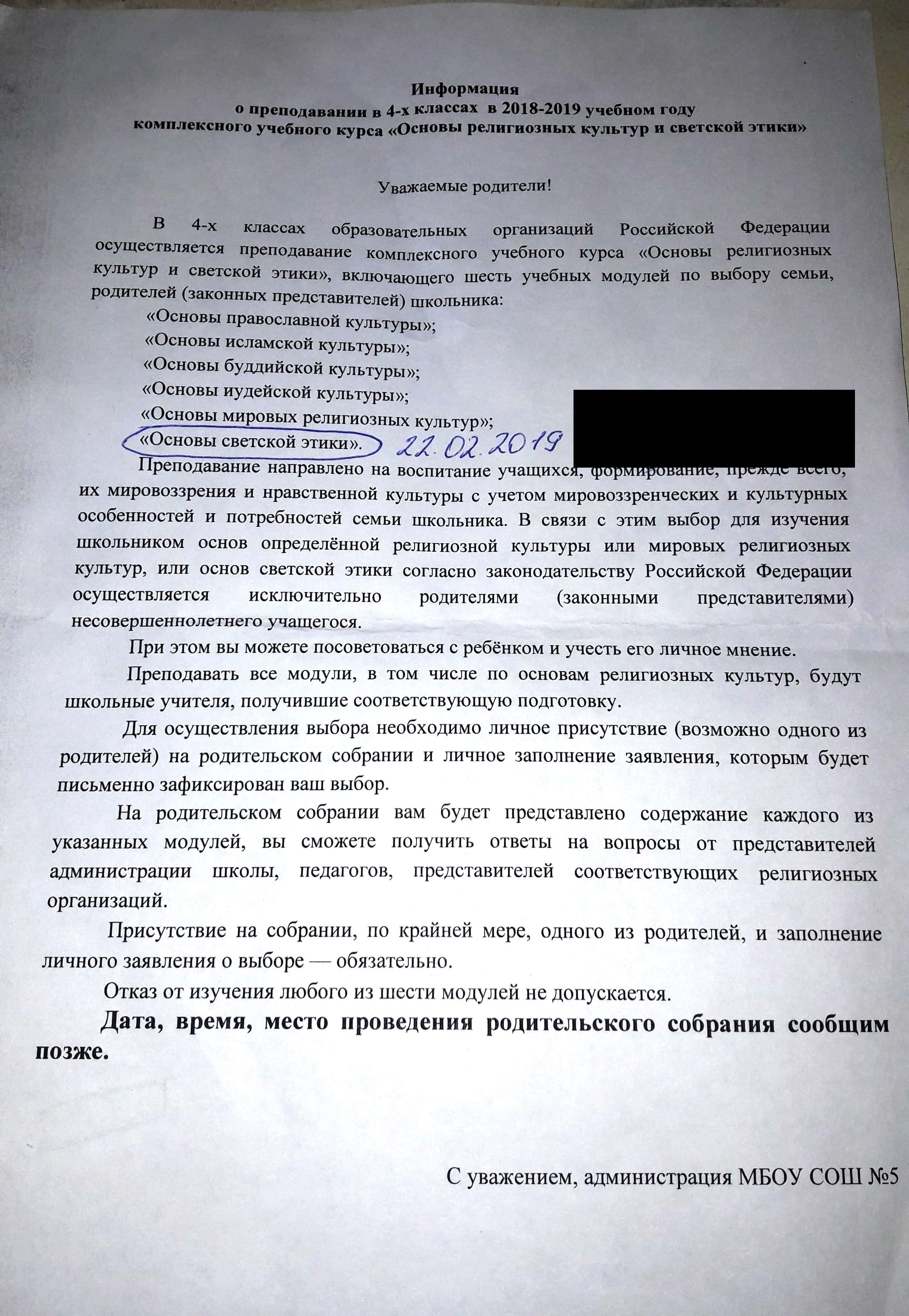 Говорится о выборе "модуля" на родительском собрании, но они сами же на это забили. Сказали отметить наш выбор и сдать.
