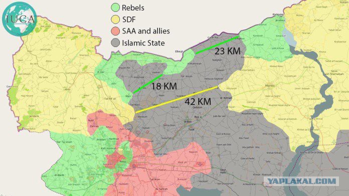 Северное Алеппо. Протурецкие формирования исламистов продолжают свое наступление на ИГИЛ западнее Джерабулуса. Наиболее активно действует на этом направлении отряды «Бригады Султана Мурада», участвующие в зачистке деревень на севере Алеппо. Представители оппозиционных сил опубликовали в Сети видео, на котором показаны боевики этого формирования во время занятия поселков в округе Саджура.