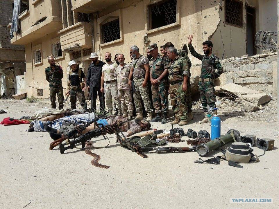 Провинция Дейр-эз-Зор: Вчера боевики ИГ предприняли мощное нападение в кварталах Аль-‘Arfi и Mouzafeen. Этому наступлению предшествовала атака трех смертников на машинах с взрывчаткой. Впрочем, камикадзе своей цели не достигли. Заминированный транспорт расстрелян на дальних подступах к сирийским блокпостам.