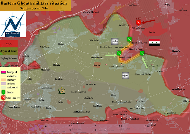 На участке Таль Савван сирийские подразделения сорвали наступление «Jaysh аль-Ислам», которое было направлено на возврат под власть исламистов данного поселка. Несмотря на неоднократные попытки, мятежникам не удалось добиться желаемого. Таль Савван по-прежнему находится под контролем сирийских военных.