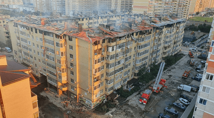Пожар в восьмиэтажном жилом доме в Краснодаре