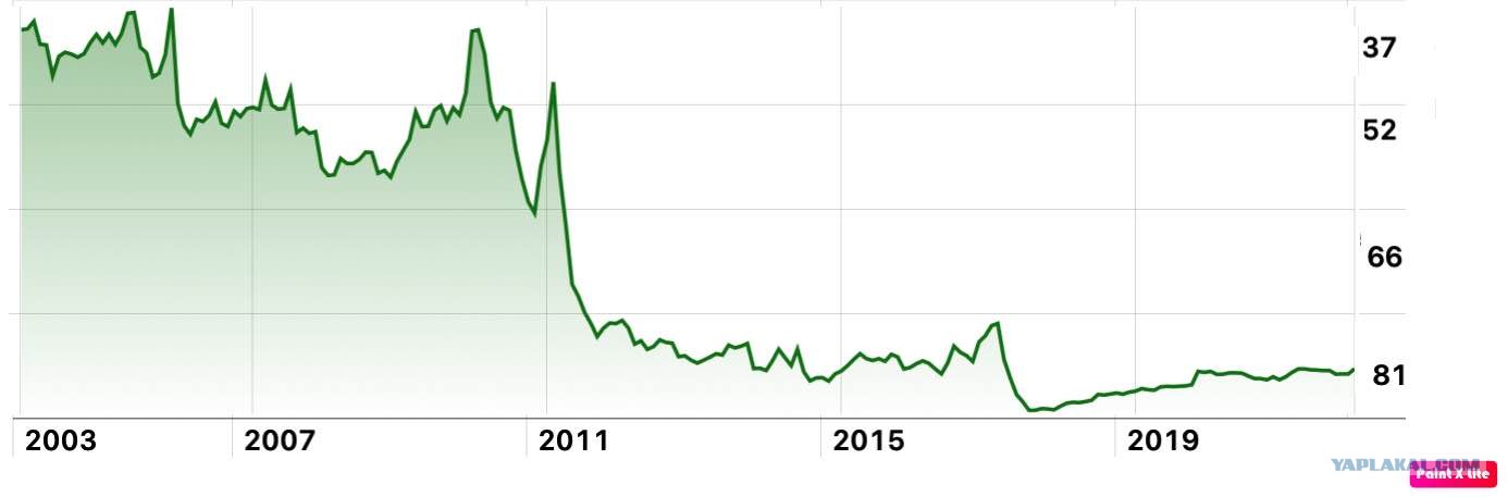 Верим. Вот график как падал рубль по отношению к доллару за последние 20 лет...