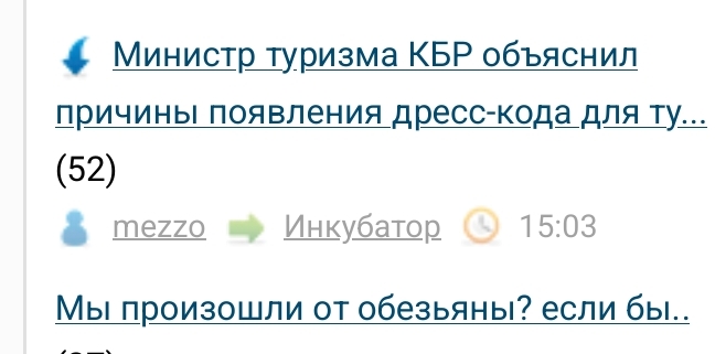 Министр туризма Кабардино-Балкарии Мурат Шогенцуков на пресс-конференции объяснил причины появления дресс-кода для туристов. Чиновник сказал , это вынужденная мера. Министерство выпустило рекомендацию после того, как «две нимфы» загорали топлес на берегу реки, что увидели местные жители, которым не понравилось поведение гостий республики.
