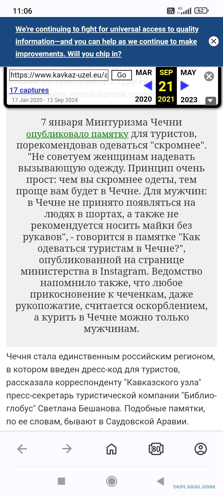Это 2021 год, Чечня ввела дресс-код для туристов.