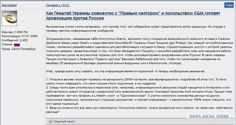 Хакеры Anonimous опубликовали взломанную переписку