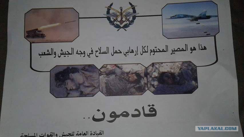 Над восточными районами Алеппо распространяют вот такие листовки: мол, даем вам, уроды, последний шанс в виде 48 часов, дабы покинуть город через предоставялемые для выхода коридоры.