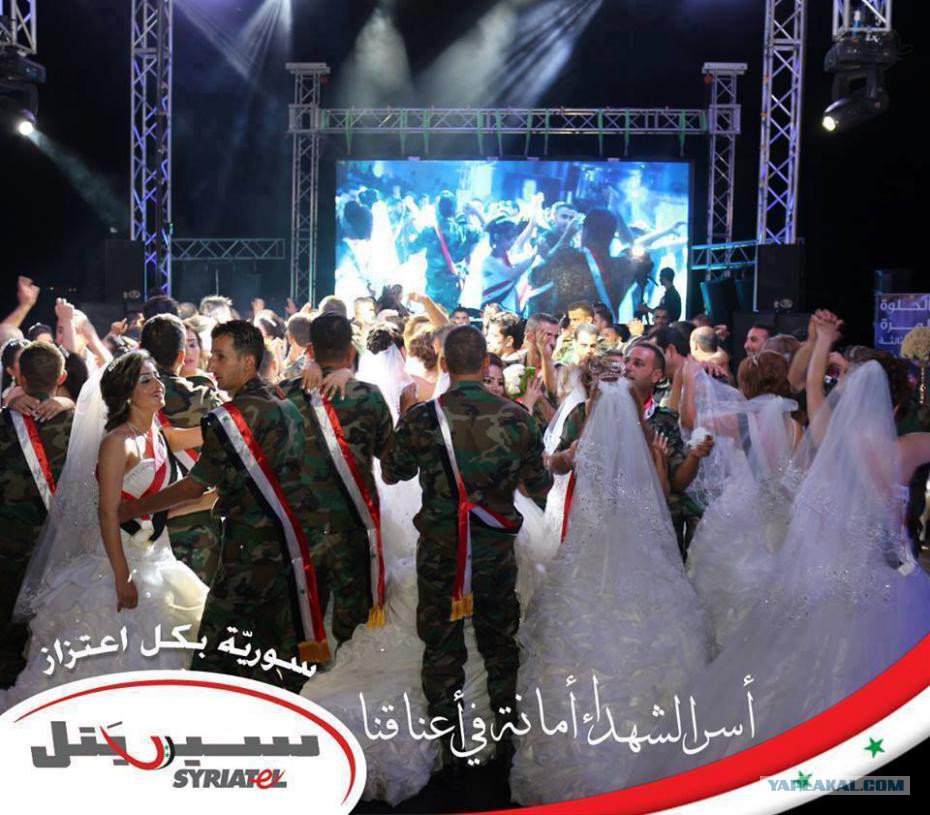Массовая свадьба в Латакии. 120 пар одновременно, женихи-бойцы сирийской армии.