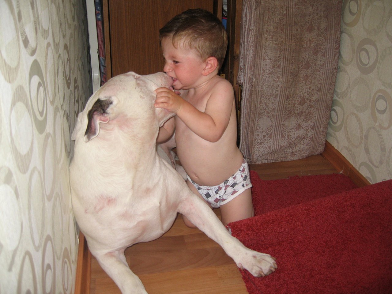 Ребенок загрызает буля.