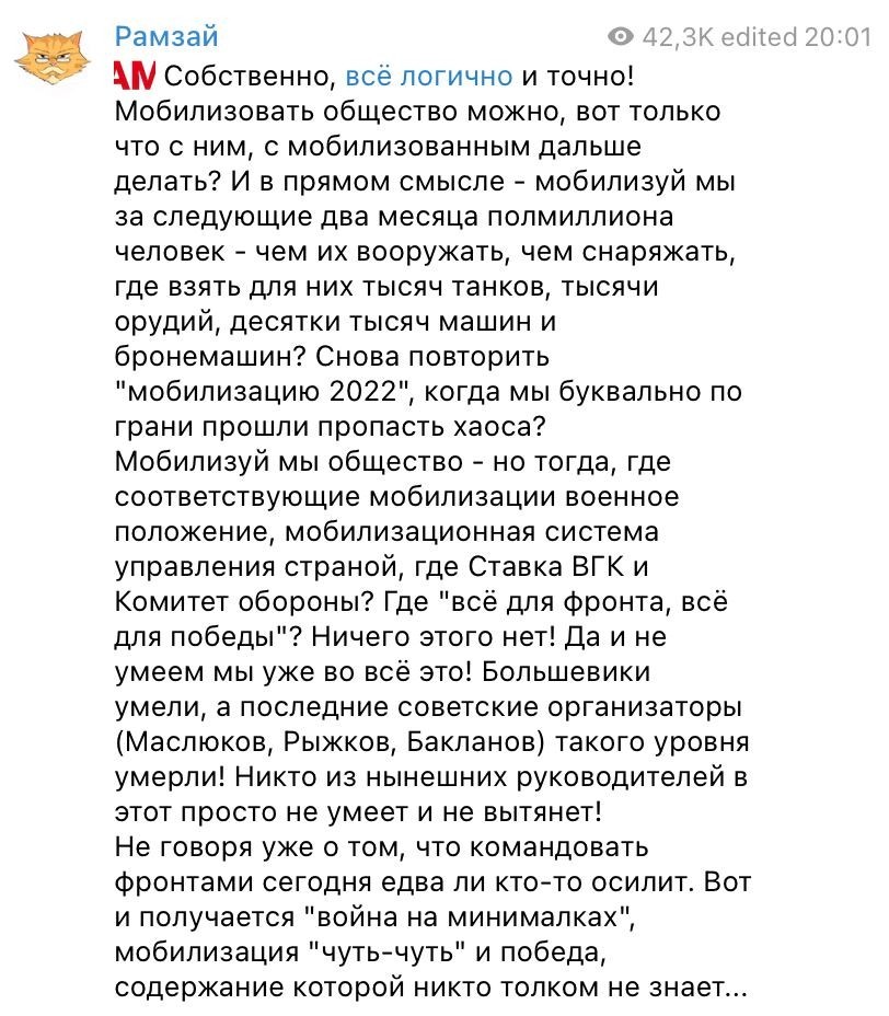 Ну по факту, мы просто не вывезем мобилизации, еще одной.