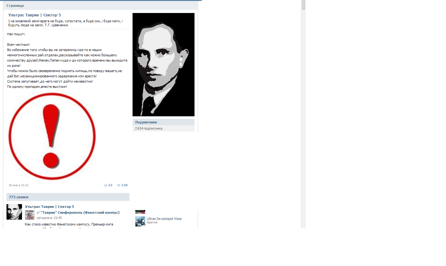 Если и предпринимать какие-то шаги по возвращению Крыма, то только сейчас, ибо дальше все будет только хуже. Вот посмотрите это ультрас фк Таврия, посмотрите, кто на главной.