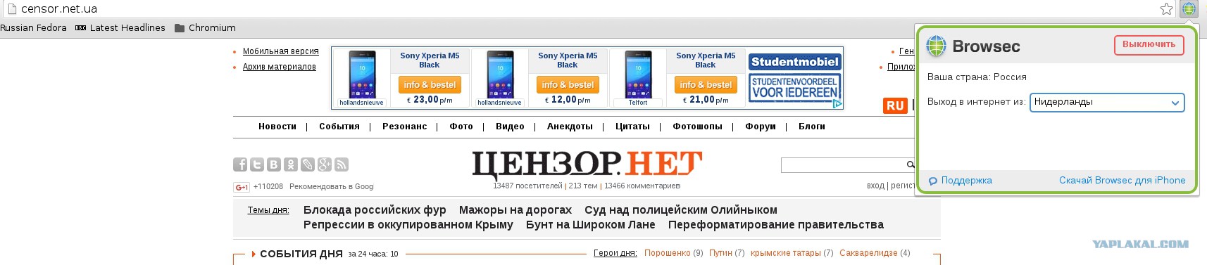хз, как из материковой части России, а в Крыму цензор заблокирован. Раньше заходил туда, почитать когда хохлы у нас в Севасе парад проведут, или евровиденье в Ялте, а теперь лень возится с прокси -не читаю. тсн тоже не вещает. так что, отстал я от последних веяний пропаганды.юю