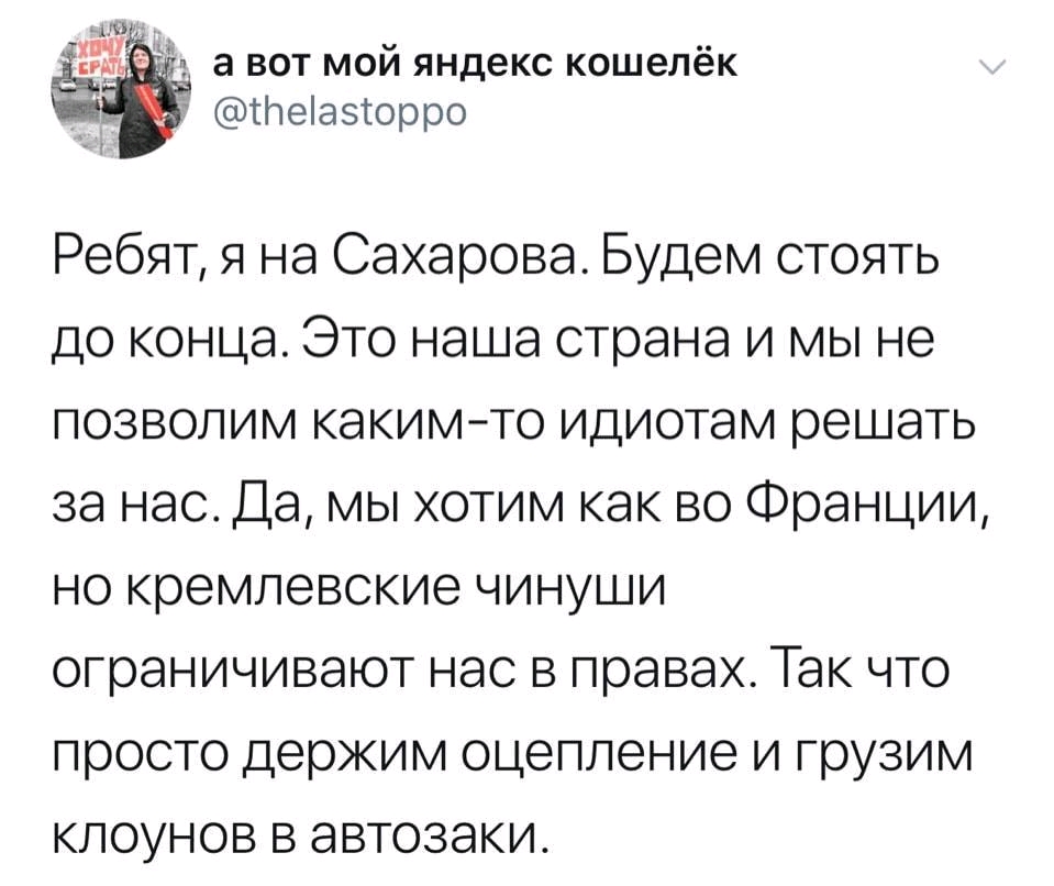 А тут этого и не надо. Чем-то недоволен - пизды. Пришёл выразить недовольство - пизды. Мирная, не мирная - всем пизды. Чтоб не повадно было выходить. Этого и добиваются, максимально запугивают пиздюлями.