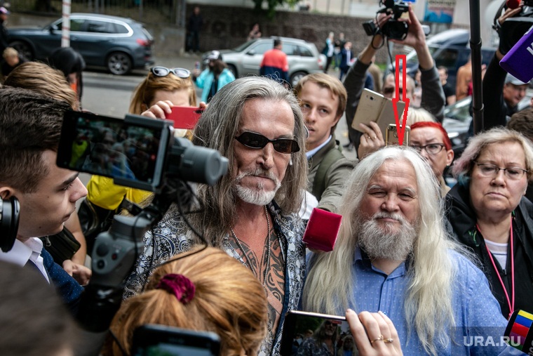 У суда собрались актёры в костюмах и шаман, а также маршем прошли барабанщицы. Несколько женщин стоят с плакатами в поддержку Ефремова, кто-то поёт песни.