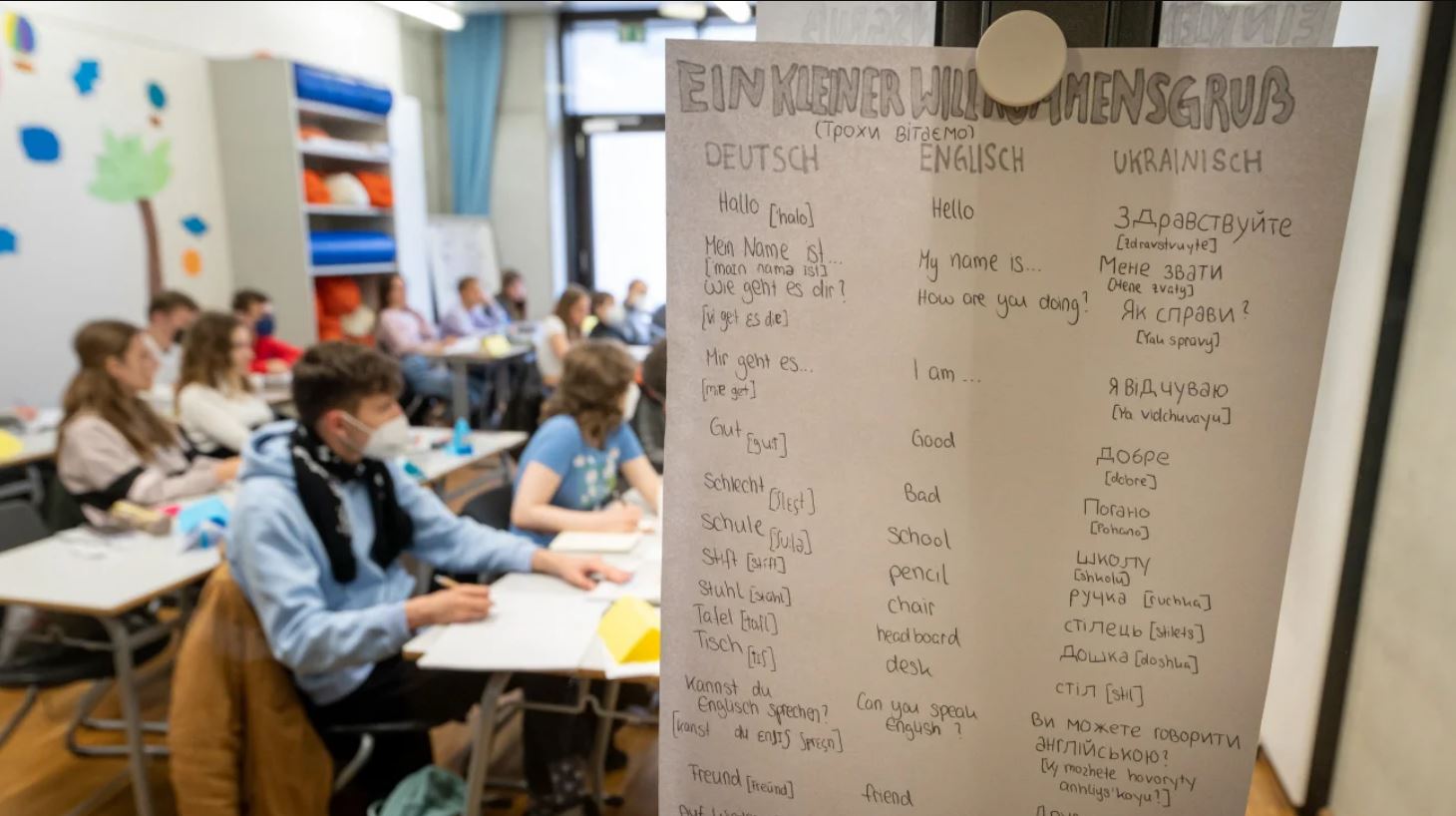 По всей Германии открываются так называемые "Willkommensklasse" - классы Добро пожаловать. Вот фото из школы неподалёку.
