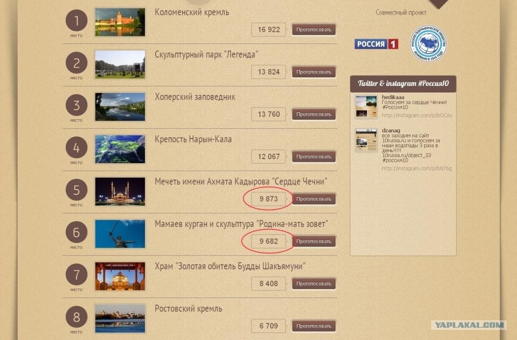 Очень странно идет голосование, такими темпами И Родина-мать, и, будь она не ладна, мечеть, за которую кто-то очень сильно потеет, выйдут на первое-второе место. А оно нам надо? Нам надо все 10 символов вытягивать, а им всего один, так что поровней голосуем, братья...