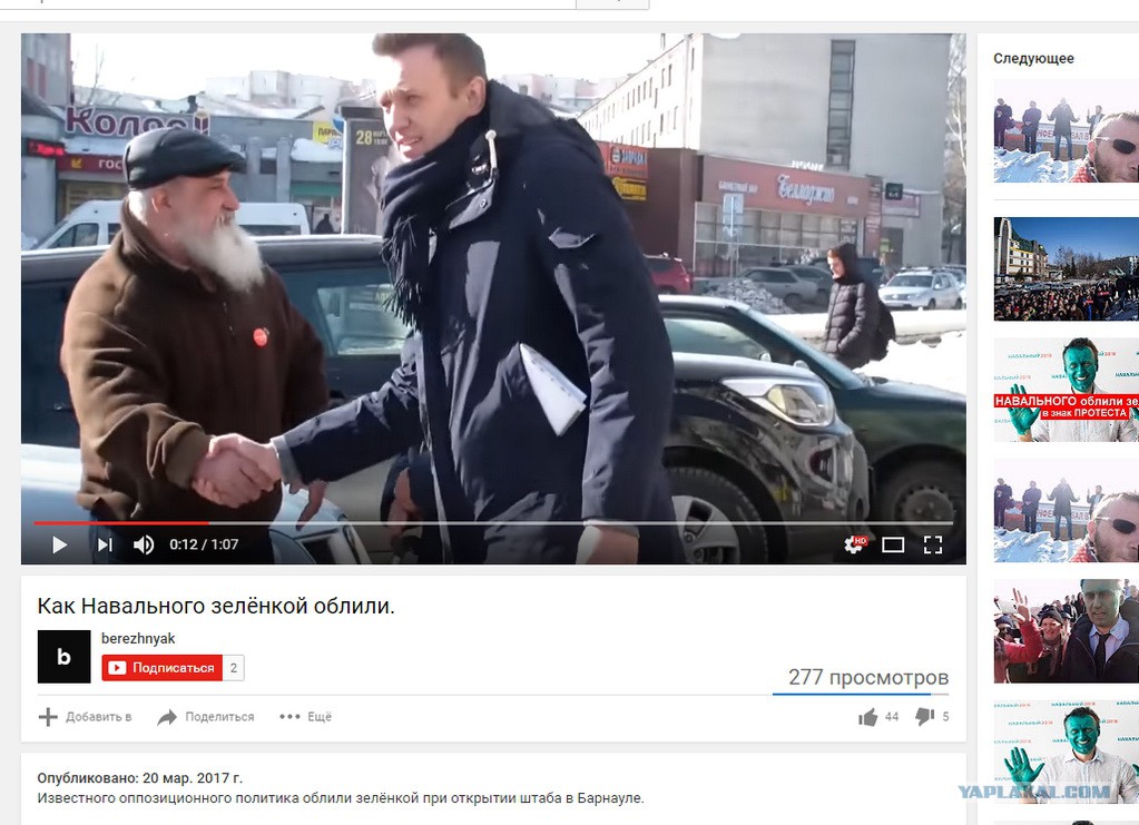Давайте.Еще раз выкладываю скрин с видеоролика где Навального обливают зеленкой из клизмы.Куртка застегнута,на шее намотан шарф.Достаньте зеленкой до рубашки!Ну вот ей богу вам насрать на обьективность и правду!